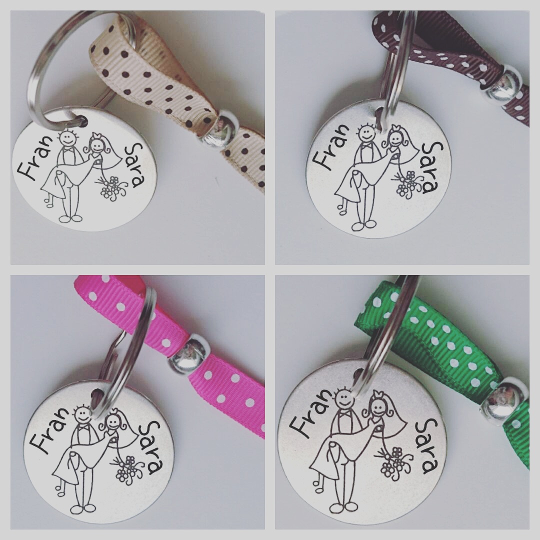 Otr@s preparando bodas que están a la vuelta de la esquina, como nuestra amiga Eva, que va a sorprender a sus padres y suegros con estos súperdetallazos:llaveros y pulseras personalizadas súperkukas.